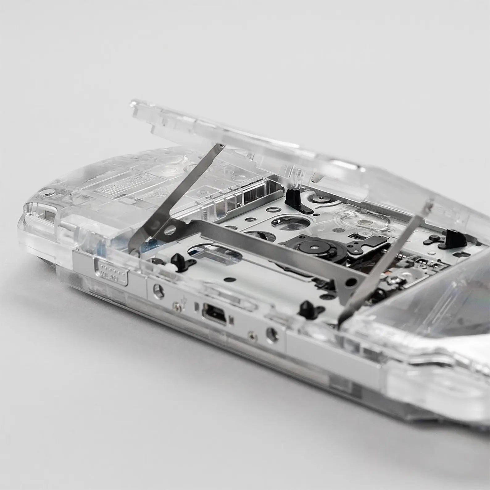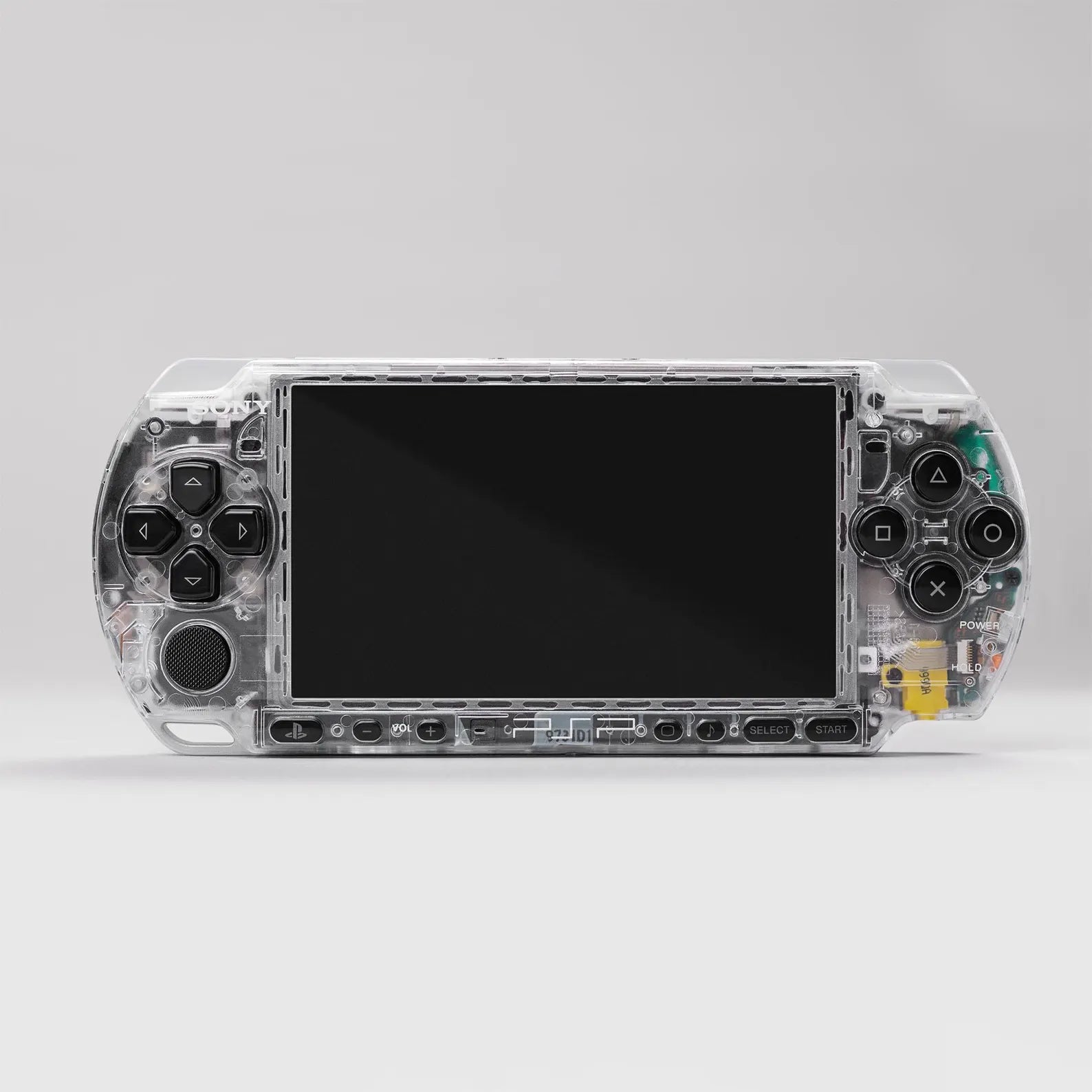 This PSP has been professionally modded and its case has been replaced with a brand-new clear housing. Latest firmware update with custom mod. Play timeless classics, explore homebrew applications, and enjoy fresh transparent aesthetics .